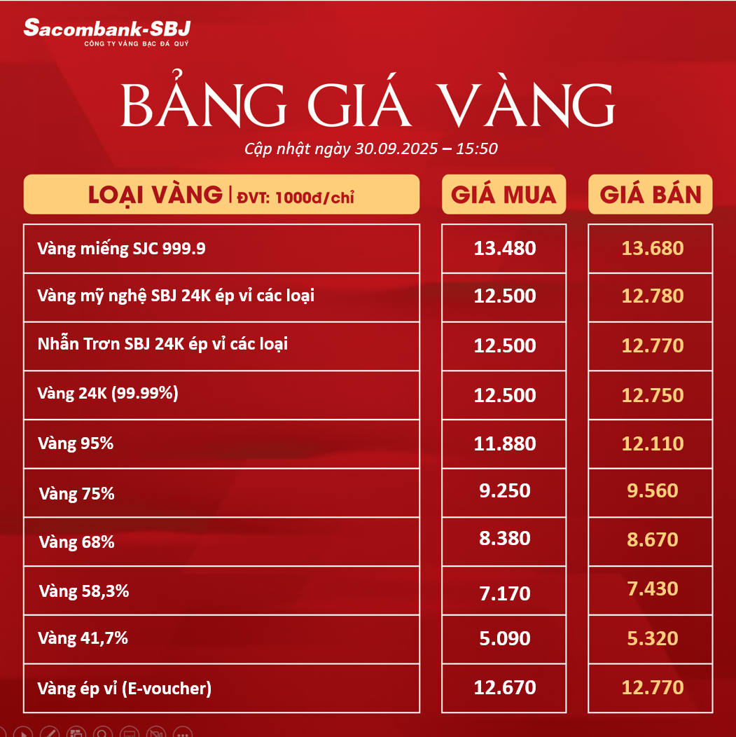 Bảng Tỷ Giá Vàng - Ngày 30/09/2025 - Bảng 3