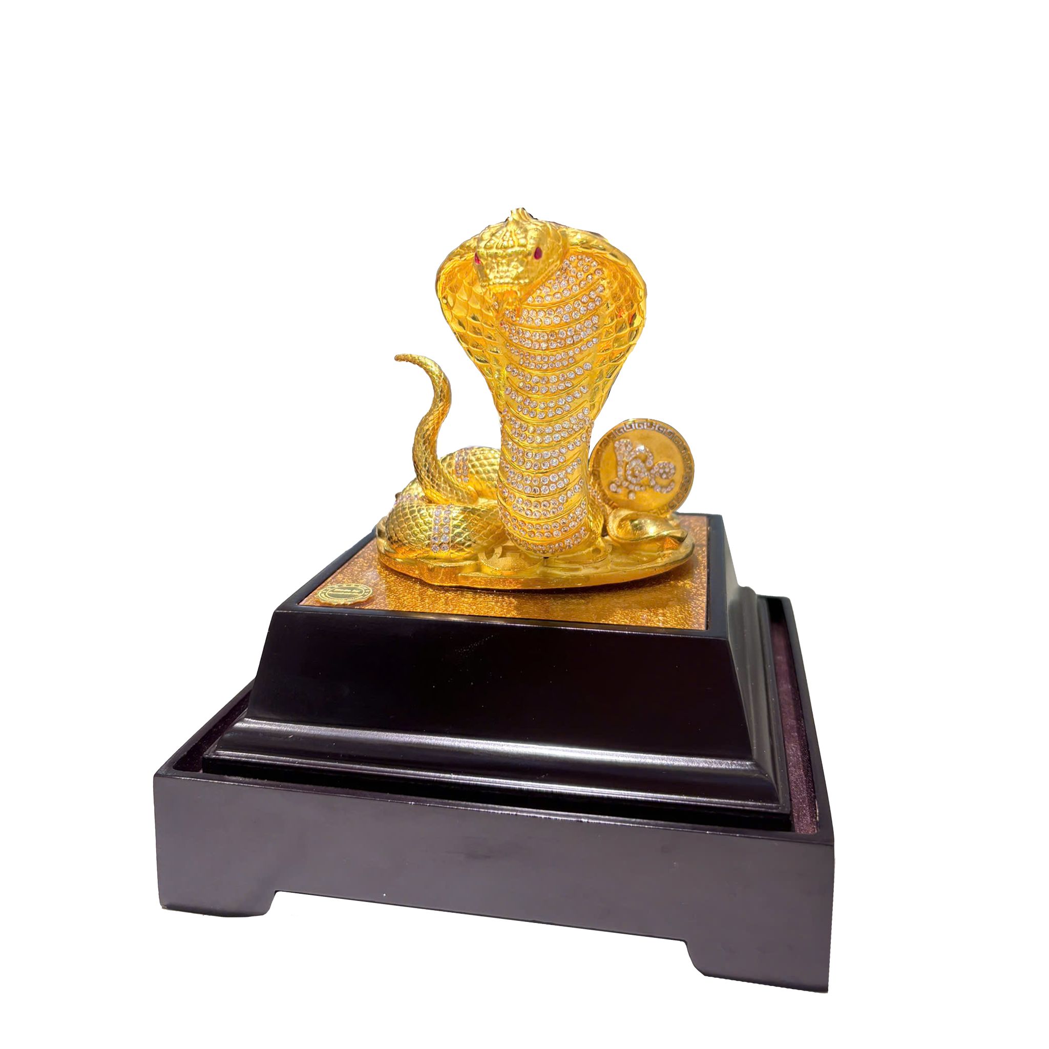 Biểu trưng tượng Quý Linh Tỵ mạ vàng gắn đá Ruby tròn 2v24, CZ tròn (13v13, 119v15, 48v17, 426v20, 103v18) KT 14x22 cm kèm hộp