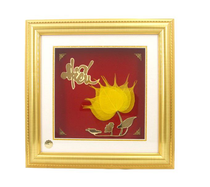 Khung tranh hoa sen lá bồ đề chữ Hiếu (27x27)