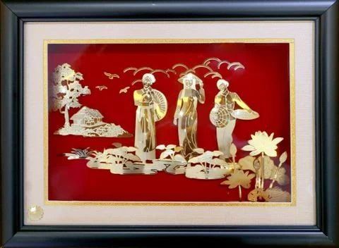 Khung tranh Thiếu nữ ba miền (40x30cm) mạ vàng