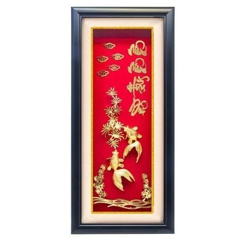 Tranh Cá " Niên niên hữu dư" 21x47 cm mạ vàng